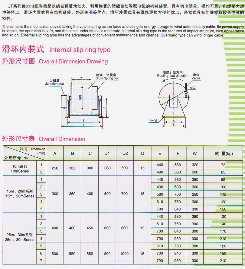 JT系列彈簧式滑環(huán)內(nèi)置、外置電纜卷筒