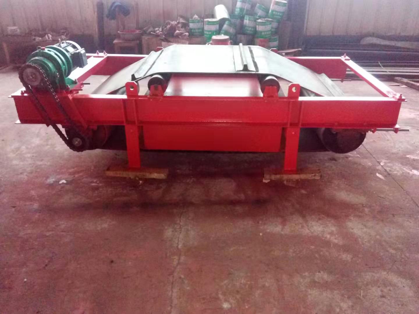 RCDC系列風(fēng)冷自卸式電磁除鐵器,是在RCDA系列風(fēng)冷懸掛式電磁除鐵器的基礎(chǔ)上增加了驅(qū)動(dòng)電機(jī)、滾筒、帶刮板的卸鐵膠帶等組成的卸鐵機(jī)構(gòu)。在工作過程中卸鐵機(jī)構(gòu)自動(dòng)將卸鐵皮帶上吸附的鐵磁性物質(zhì)拋到除鐵器以外的集鐵箱內(nèi),無需停電人工清理,實(shí)現(xiàn)了除鐵自動(dòng)化, 在鋼鐵廠、水泥廠、多用于礦渣除鐵和保護(hù)輥壓機(jī)、立磨、破碎機(jī)等重要設(shè)備。